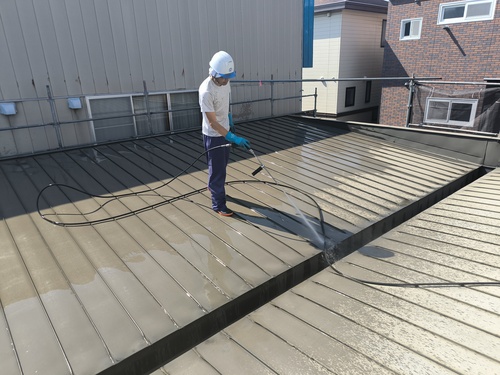 現在何件か塗替え工事を行っておりますが、塗装前の水洗いは必ず行っております。