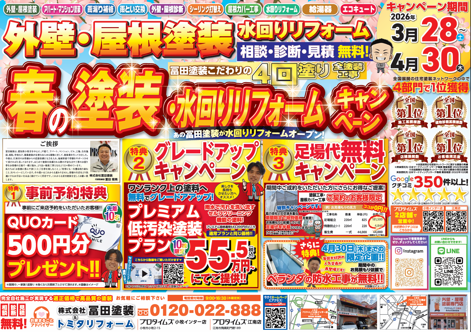春の外壁・屋根塗装&水回りリフォームキャンペーン開催! 3/28(土)~4/30(木)