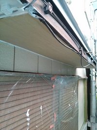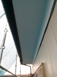 今、工事させて頂いているお宅の軒天、雨樋交換、外壁塗装工事の様子です。