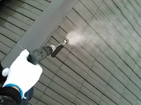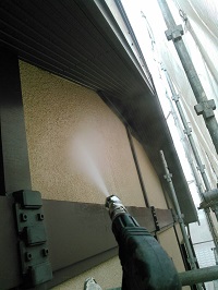 高圧洗浄は、外壁や屋根に塗装面にこびりついたカビや汚れを高圧の水流によって洗い落として、塗料の接着をよくするために行います。
