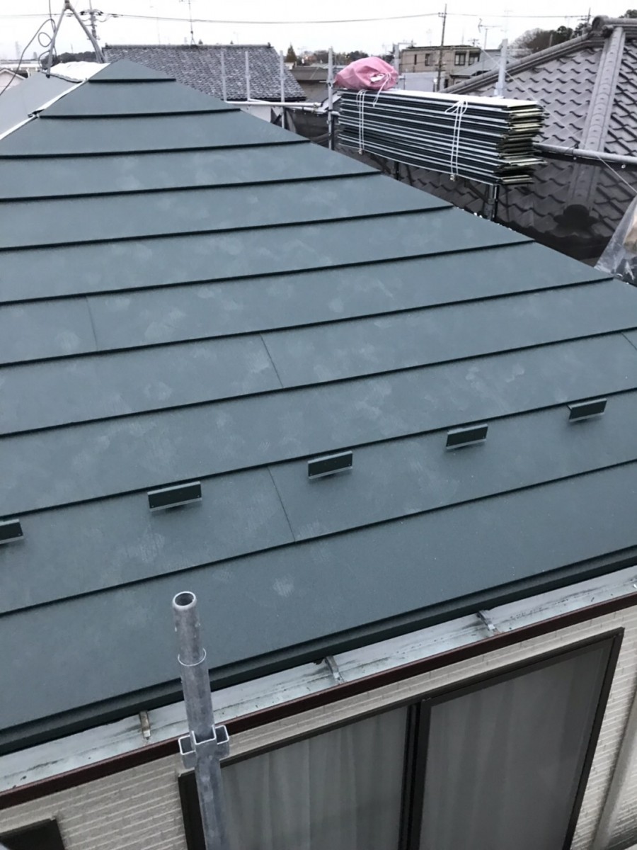 お問合せの際には塗装か葺き替えかで悩んでおられましたが、コロニアルの劣化の状態から塗装は諦め、ガルバリウム鋼板の屋根材で改修工事を行うことになりました。