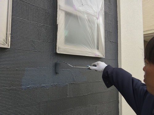 通常外壁塗装で多く見られるのがローラーによる塗装です。塗り方はシンプルで、塗料のついたローラーを全体に塗りつけます。塗り方で差が出ると言うよりは色でデザインに差が出る感じになります。おそらくみなさんが1番良く目にする塗り方がこのローラー仕上げだと思います。