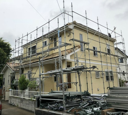 千葉市稲毛区にてアパートの外壁塗装、屋根塗装、始まりました。