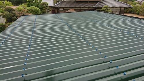 投稿遅れましたが先日屋根の中上塗り、壁上塗り、シャッター中塗り、軒樋塗りました。