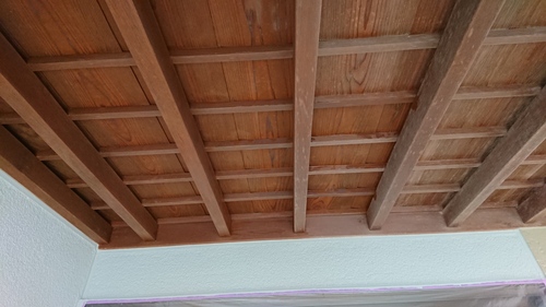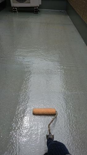 ベランダ防水の下塗り、雨戸塗装しました。雨戸は錆がひどいものは交換、その他は錆を落として錆止め塗ってから交換した雨戸に色を合わせてウレタンで中上塗りです。