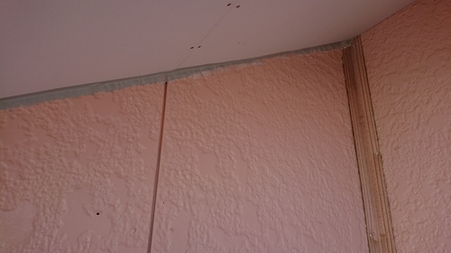 今日は屋根裏の断熱材剥がし、養生、壁下塗り、屋根のボルトの錆び転化材、屋根の補修、ハチマキ錆止めしました。