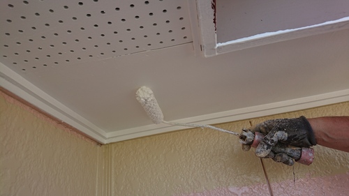 外壁中上塗り、破風中上塗り、木部下塗り、軒天上塗りです。