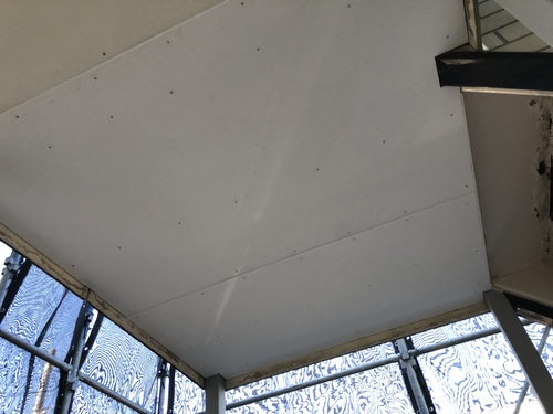 現在進行中の東船橋アパートは、階段踊り場の端部亀裂から浸水して、軒天の内部の木部が腐ってしまってます。