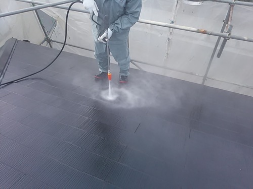 コロニアル(薄型スレート)屋根はらせん状に回転しながら洗うトルネードノズル使い、汚れはもちろん、弱くなった塗膜も一気に洗い落とします。