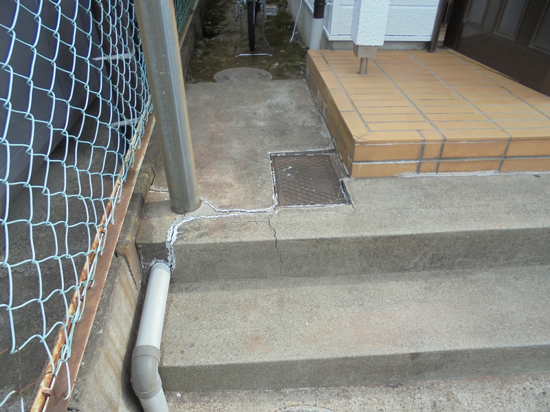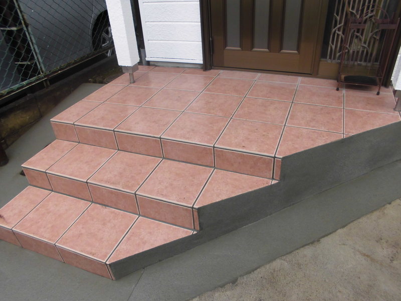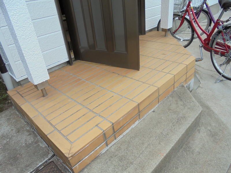 玄関ドアが床にあたり全開しないので改修工事しました。ついでに横にスロープを設けました。自転車が入ります。デットスペースですね。