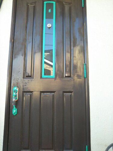さて今回玄関ドアの塗装をしました。元のペンキが何層にも塗られており、ペンキの剥げた