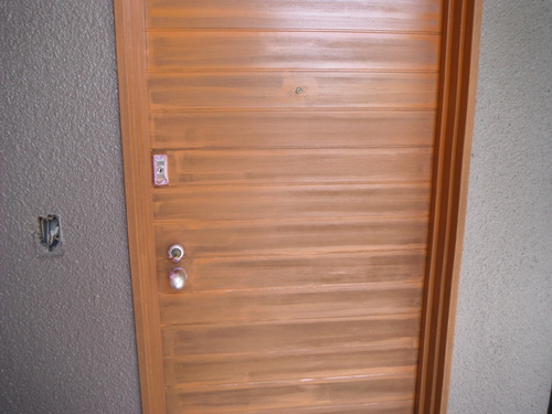 今回外壁塗装した現場ですが、玄関ドアが剥がれていましたので補修塗装しました!!