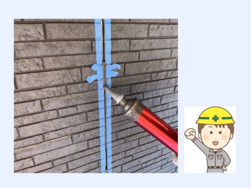 この工事は、建物の隙間や継ぎ目に防水材をしっかりと埋める作業で、