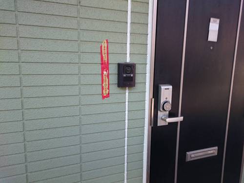 本来は下塗り完了後に行うのですが、今回は上塗り完了後に施工致しました。
