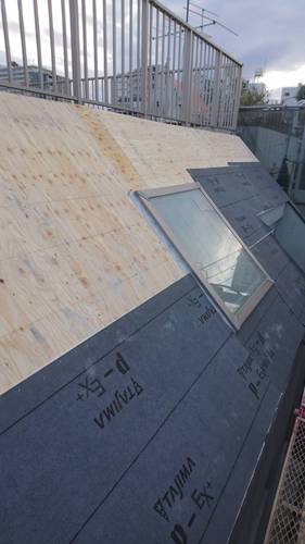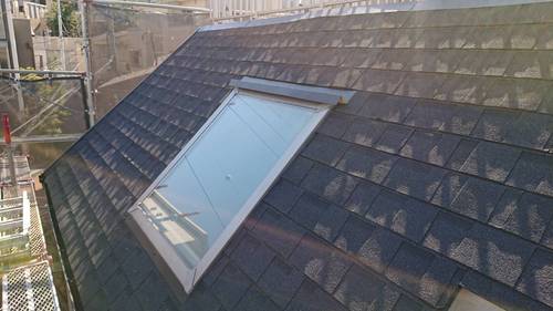 屋根は斜壁部分にアスファルトシングル瓦を施工