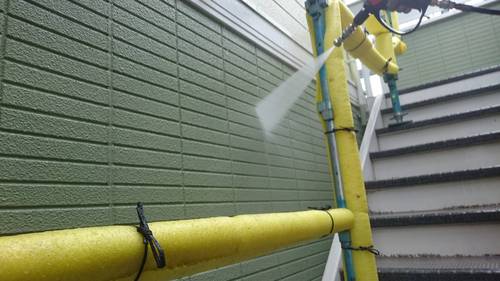 昨日に引き続き倉庫の大規模塗装工事も施工中ですが、今日からアパートの塗装工事も始まりました。