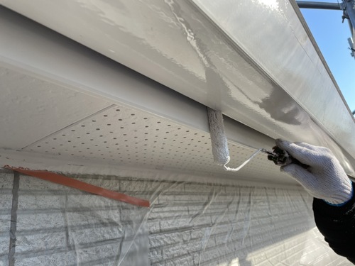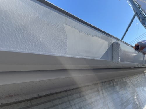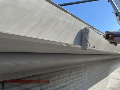 ・破風・雨樋共にケレン作業、中塗り、上塗りと2工程、塗装を行いました。