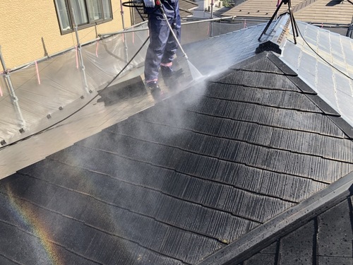 下塗りが白いのは遮熱塗料を使用しているためです。