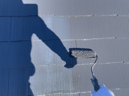 下塗り・中塗り・上塗り、タスペーサーを取付け屋根塗装が完了になります。