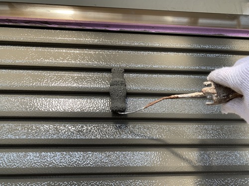 ・破風板は前塗装も剝がれ、傷んでいたのでしっかりとケレン作業を行い、木部用下塗り材を使い、中塗り・上塗りと4工程行いました。