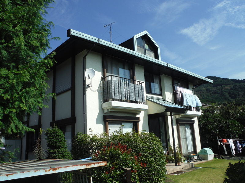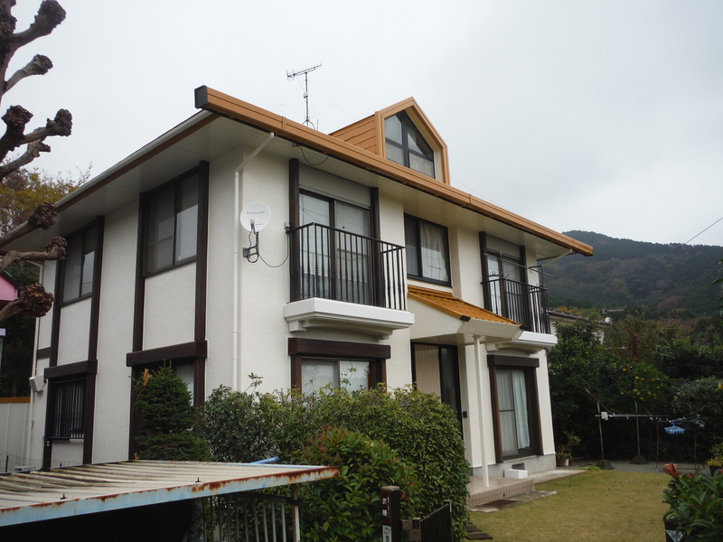 外壁の色は以前と同じで、屋根の色を明るくしました。軒天も黒色からクリーム色に塗り替え、家全体が明るくなりました
