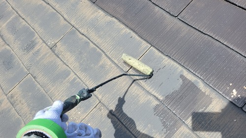 秦野市のy様邸では、屋根の下塗りを致しました。