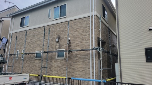 秦野市 外壁塗装工事スタート 本日は足場設置です 20230829