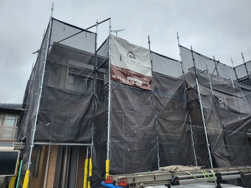 秦野市で外壁塗装工事がスタートしました。連休中も工事させていただきます。