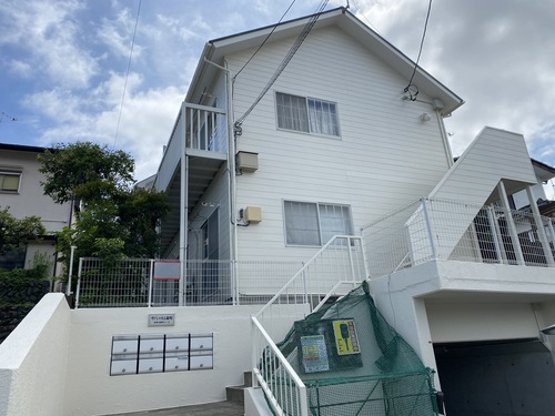 秦野市でアパートの外壁塗装、屋根塗装工事がスタートしました。