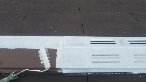 屋根洗浄が完了しましたので鉄部分の錆止め塗装しました。