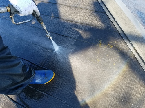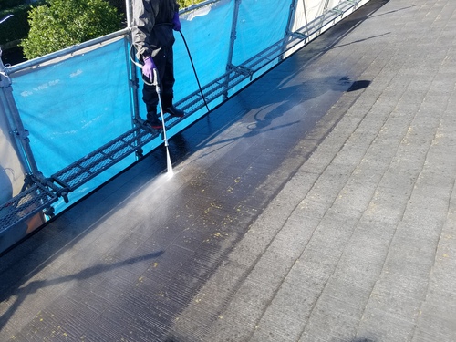 小田原市のアパートで洗浄工事を致しました。汚れを綺麗に洗い流して塗装します。【洗浄中】