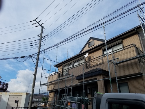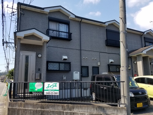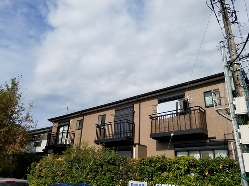 小田原市で外壁塗装工事中のアパート塗装の外壁、屋根塗装が完成しました。【塗装前】