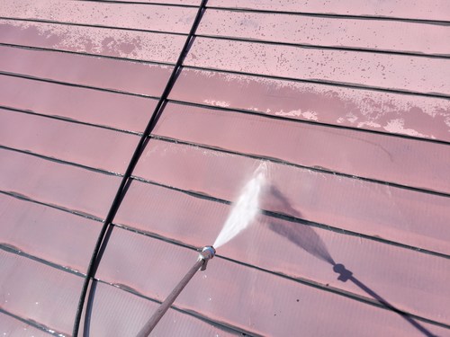 本日は、長年の汚れカビ、コケを高圧洗浄で洗い流す作業です。