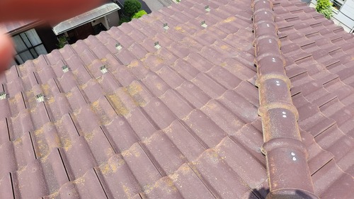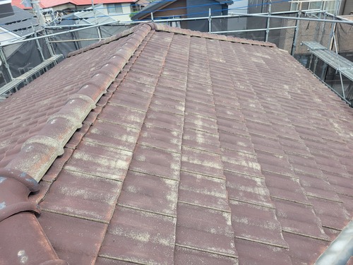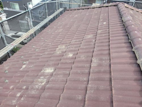 秦野市で外壁塗装工事の屋根セメント瓦の高圧洗浄工事を致しました。