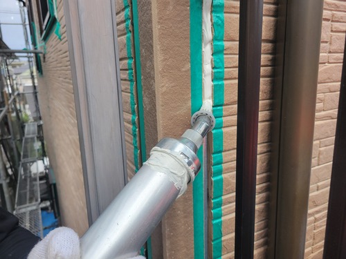 サイディングは2面接着なので、横に残ったコーキングも綺麗に撤去します。