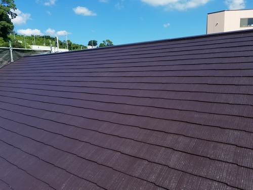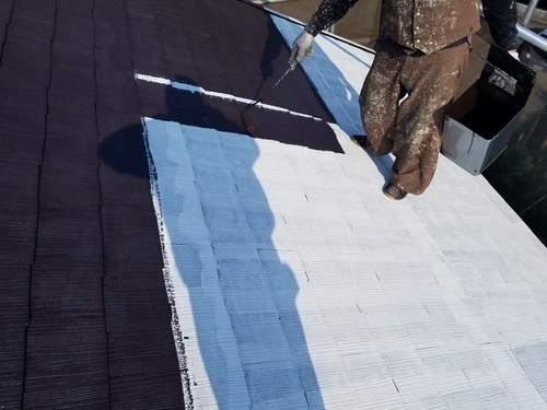 屋根、遮熱塗装の中塗り、上塗りです。【中塗り】