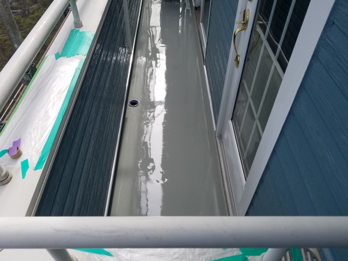 ベランダ塗膜防水主材施工しました。後はトップコート塗装して完了です。【塗膜防水主材】