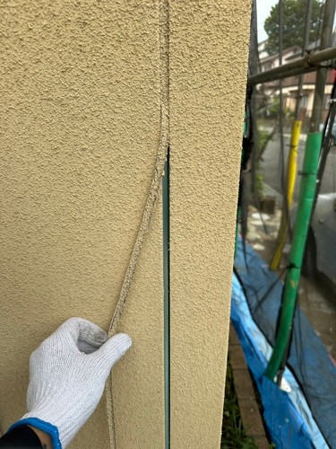 コーキングの上にリシンが吹き付けして、あるので通常より劣化してませんでした。