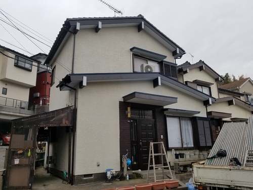 秦野市のS樣邸塗装工事は屋根の塗装をしています。もう少しで完成しますのでもうしばらくお待ちください。宜しくお願い致します。