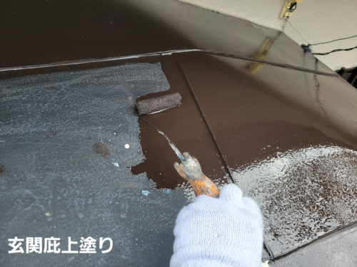 秦野市にて玄関庇の上塗り(仕上げ塗装)を致しました。