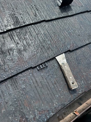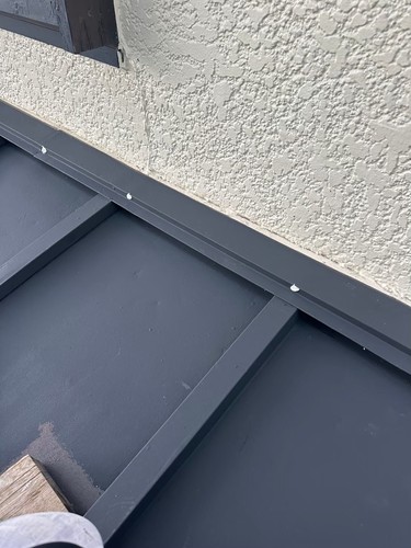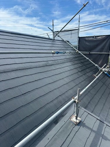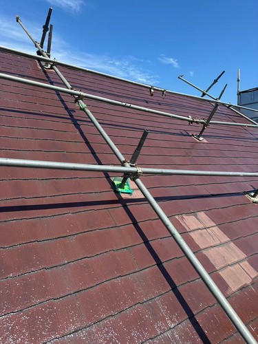 屋根勾配が急なため、屋根に足場の設置して作業しました。