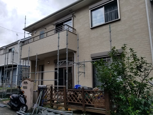 近隣の方にご迷惑おかけしないように足場の設置工事です