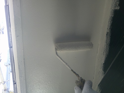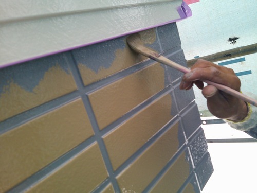こちらのお宅は1階のタイル調サイディング部分を2色に分けて塗装しました。細かい部分を刷毛で丁寧に塗装していく緻密な作業です。