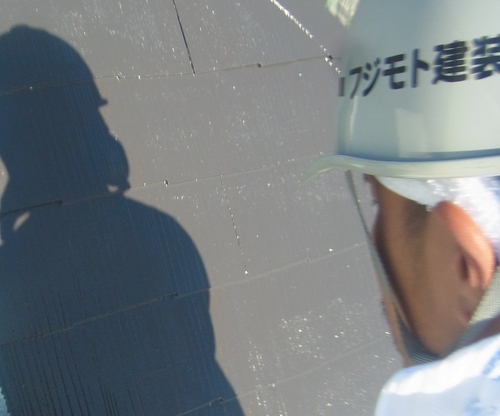 お尋ねします。 現在、自宅の外壁塗装を依頼しております。モルタル外壁で、塗料はダイヤスーパーセランフレックスを使っています。 三面は中塗りまで完了、残る一面は下塗りを終えています。 しか