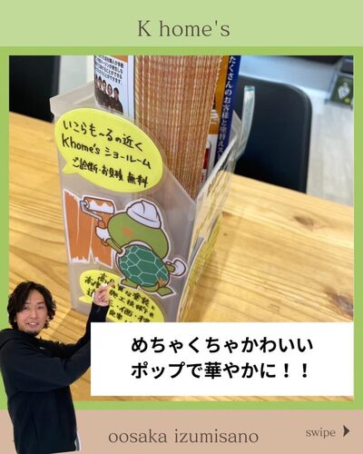 なんの味気も無かったチラシ立てが、ケーホームズ自慢の事務員さんの手で、かわいいチラシ立てに変身しました!