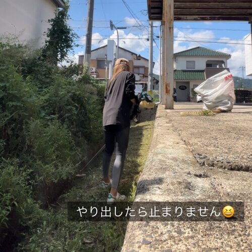次にショールーム横の草刈りをしている私🌠