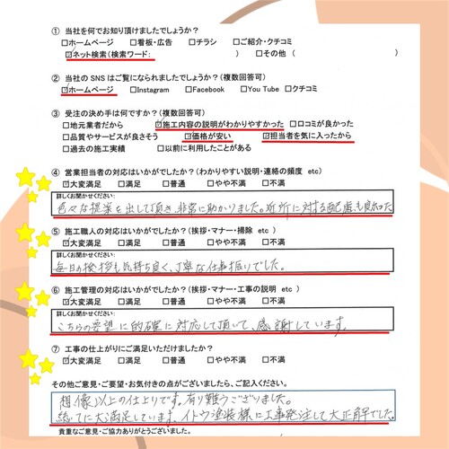 本日は、イトウ塗装で実際に施工をご依頼いただきましたお客様から頂戴しました