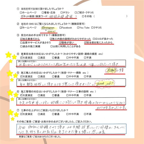 本日は、イトウ塗装で実際に施工をご依頼いただきましたお客様から頂戴しました