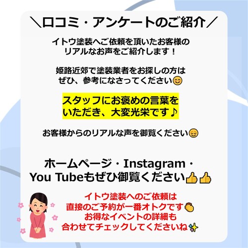 また、塗装工事についての知識をもち対応もスムーズにできることで安心頂ける点もポイントですね😊