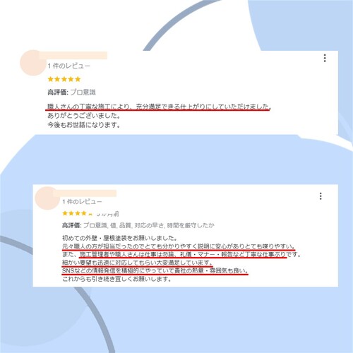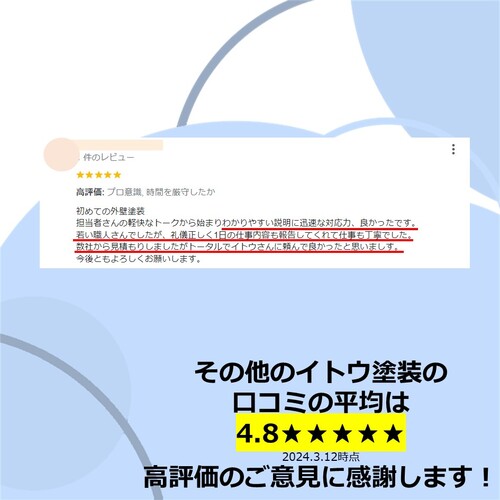 これから外壁塗装屋根塗装を考えられる方は是非、業者選びの選択の際に今回のアンケート・口コミをご参考頂けますと幸いです😊